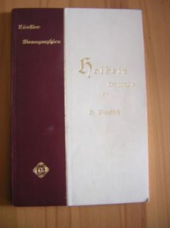 „Künstlermonographien in Verbindung mit Anderen herausgegeben von H. Knackfuß. XVII. Holbein der jüngere.“ Gut erhaltener flexibler Leinenband mit Goldprägung und Kopfgoldschnitt, vierte Auflage bei Velhagen und Klasing in Bielefeld und Leipzig 1902.