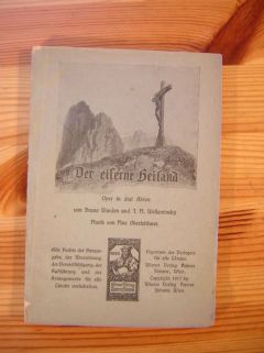 Ignaz Michael Welleminsky (1882 Prag-1942 USA) war (zusammen mit Bruno Warden oder Hardt-Warden, 1883-1945, Textdichter und [Film-]Schauspieler) ein vielbeschäftigter Autor von Libretti für Opern und Singspiele und von Schlagern und Couplets. Max Heinrich Edler von Oberleitner (1868-1935) war Jurist, Tuchfabrikant, Komponist und Dirigent aus Šumperk (Österreich-Ungarn, dann Tschechoslowakei), war von 1890-1895 Schüler Anton Bruckners, der ihm 1892 den 150. Psalm widmete. Er überwachte den Druck der 8. Symphonie Bruckners. „Der eiserne Heiland“ ist seine erfolgreichste Oper. Erschienen ist das Libretto 1917 im Wiener Verlag Rainer Simons. Simons (1869-1934) war von 1903-1917 Leiter der Wiener Volksoper, Zemlinsky war sein Musikdirektor. Die Produktionen der damaligen Zeit waren richtungsweisend. Danach war er Professor für darstellende Kunst an der Wiener Musikakademie.